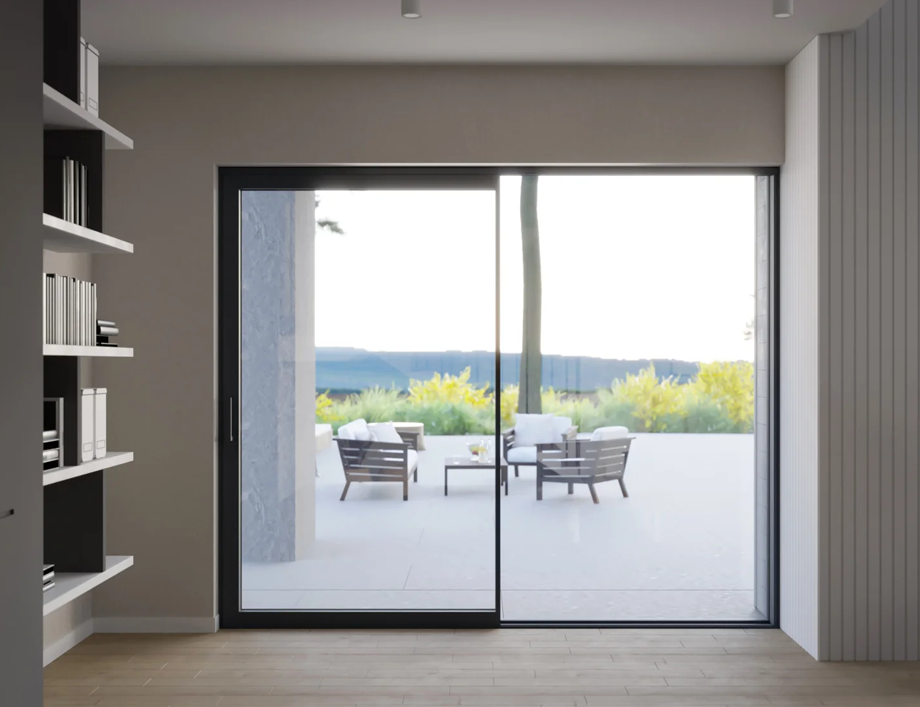 Służy do konstruowania wielkogabarytowych drzwi podnoszono-przesuwnych wyposażonych w najwęższy dostępny na rynku słupek środkowy wynoszący zaledwie 25 mm.